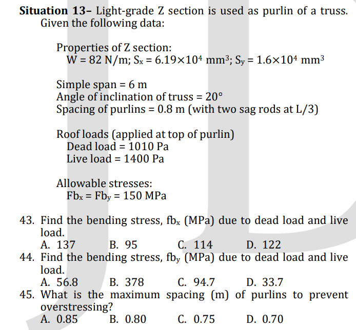 Solved Situation 13 Light Grade Z Section Is Used As Purlin Chegg Com